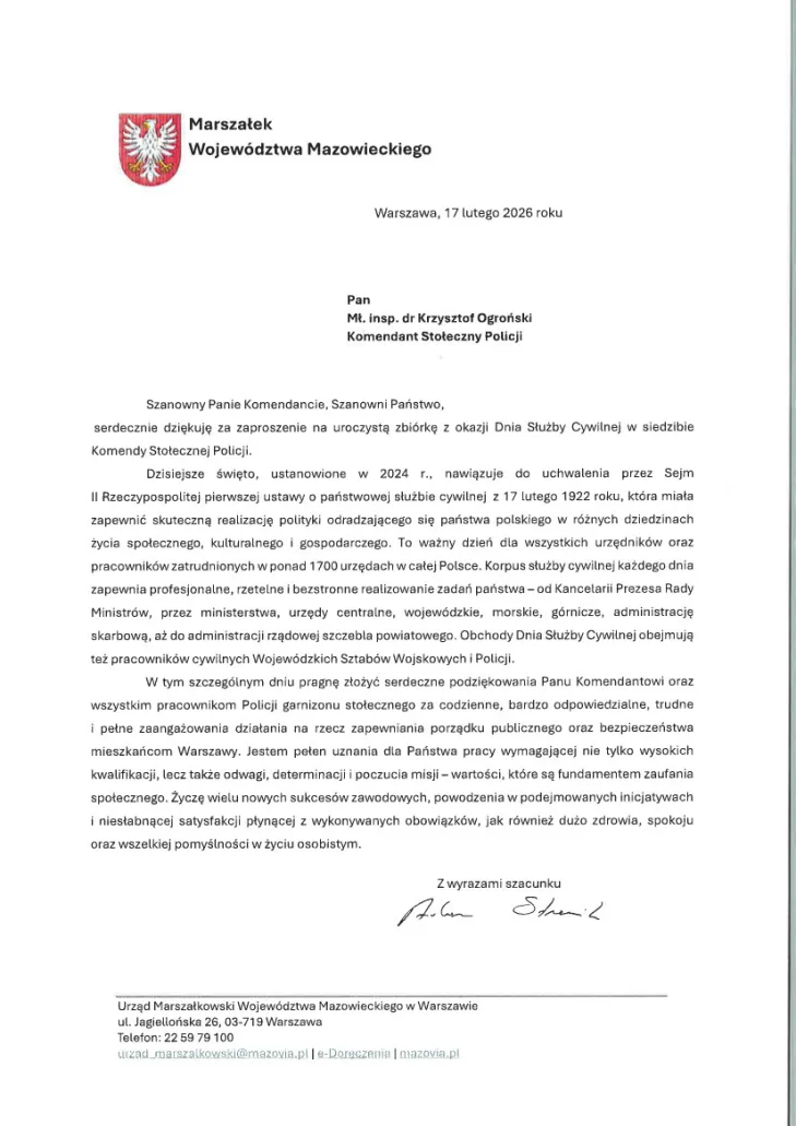 Życzenia Marszałka Województwa Mazowieckiego na Dzień Służby Cywilnej
